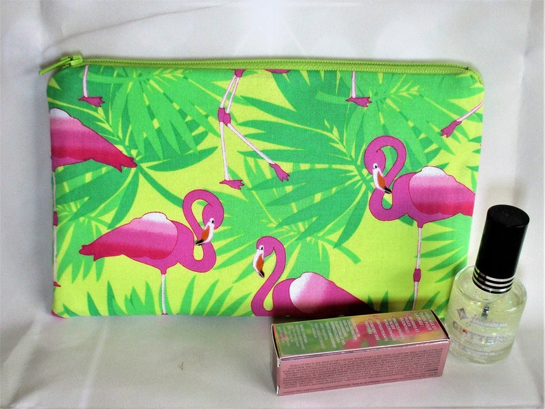 Flamingo Makeup Bag Cute Zipper Pouch Tropical Cosmetics Etsy