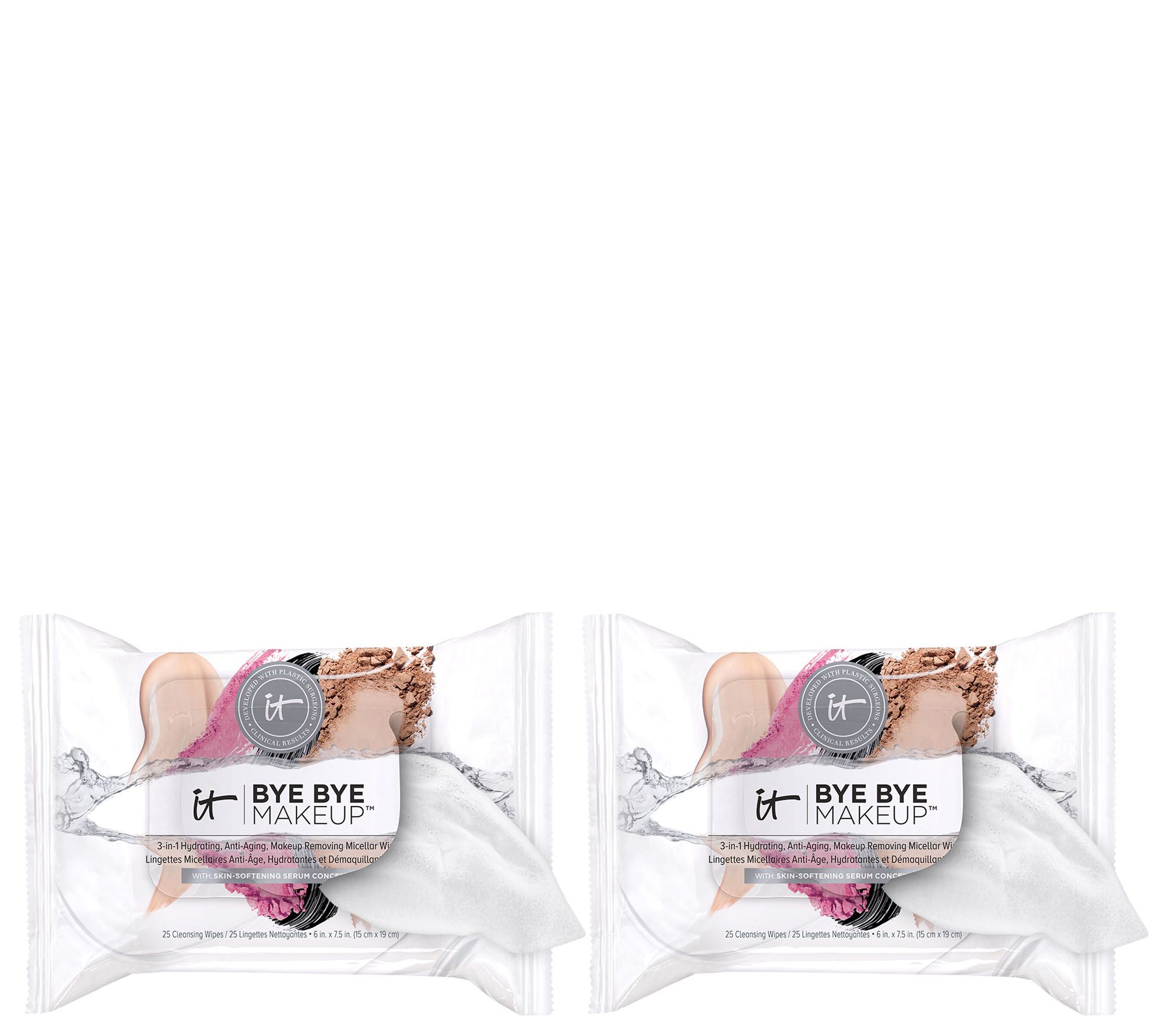 Developed with plastic surgeons it cosmetics bye bye makeup micellar wipes feature the benefits of your best selling bye bye makeup cleansing balm packed into perfectly portable disposable wipes.
