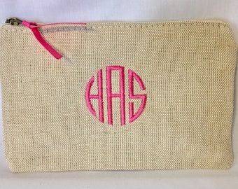 Monogram Jute Cosmetic Bag