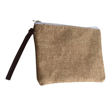 Monogrammable Jute Cosmetic Bags Handmade Burlap Makeup With Zipper