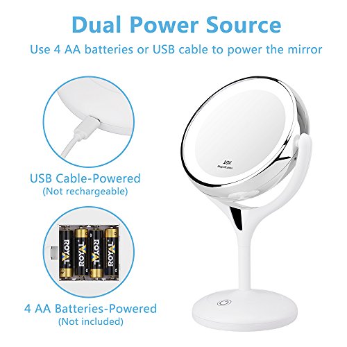 Kedsum 1x 10x Double Sided Lighted Makeup Mirror 360 Degree Swivel