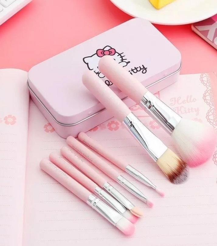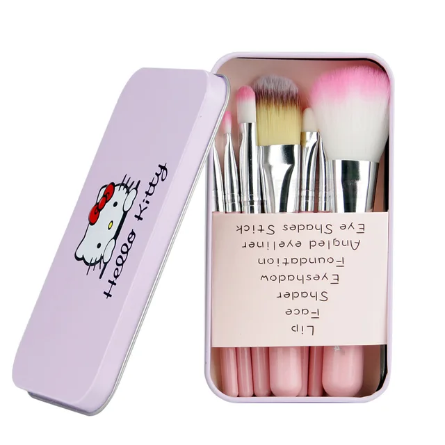 7pcs Hello Kitty Makeup Brush Set With Iron Mini Box Make Up