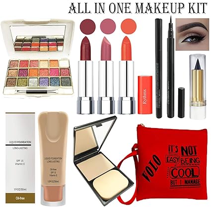 Volo All In One Professional Women S Makeup Kit 3 Pcs Lipsticks 1 Eye Shadow 1 Foundation 1 Eyeliner 1 Compact 1 Kajal 1 Pouch Set Of 9 Pcs