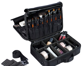 Professional Makeup Case Travel Organizer Set Large Black Cosmetic