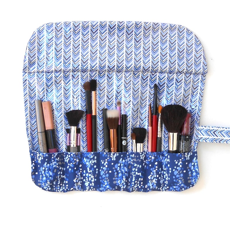 Large Fabric Makeup Brush Case With 7 Pockets Travel Cosmetic Etsy