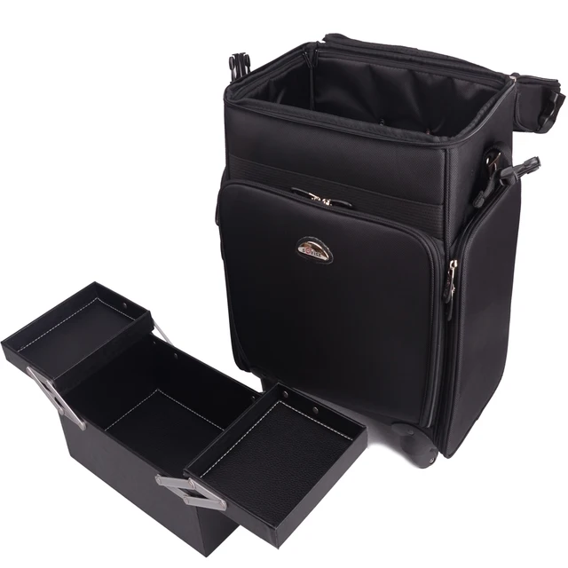 Songmics makeup case rolling trolley cosmetic luggage caseextra large for hairdressing makeup with removable wheels sliding drawers reinforced rod easily portable for travel red ujhz08rdv1 39 out of 5 stars 3. It has two wheels that make it easy for moving. Tz case ab 408tb large beauty travel case on wheels heavy duty design. Tiered shelves make it easy to see and access everything you need and a carry handle makes it easy to tote your makeup essentials around the house or on the road.