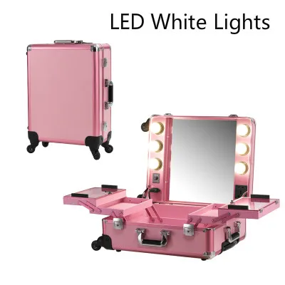 Pink Led White Light Makeup Case Lights Professional Rolling