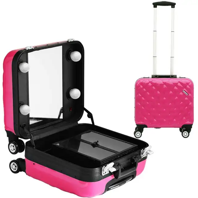 2019 2018 Lighted Makeup Box Trolley Cosmetic Mirror Wheeled Case