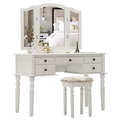 Vasagle vanity table set with large frameless mirror makeup dressing table set for bedroom bathroom 5 drawers and 1 removable storage box cushioned stool white urdt25w 41 out of 5 stars 16 13999 139. Bedroom vanities also known as vanity or dressing tables. Bedroom makeup vanity finishes. See more like this large makeup vanity table stool dressing set oval mirror jewelry cosmetic drawer.