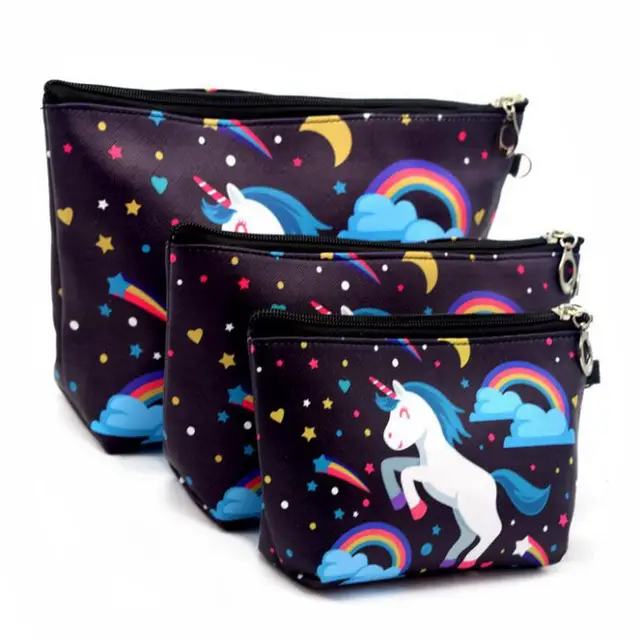 3 Sets Of Suits Unicorn Flamingo Cosmetic Bag Large Size Makeup Bag