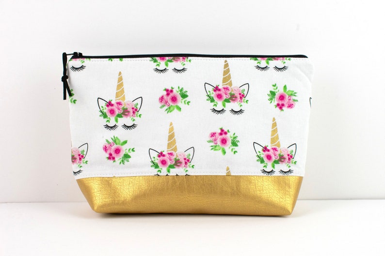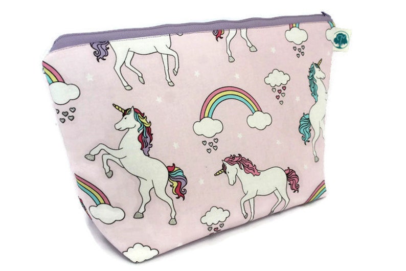 Pink Unicorn Makeup Bag Large Zip Pouch The Curious Needle