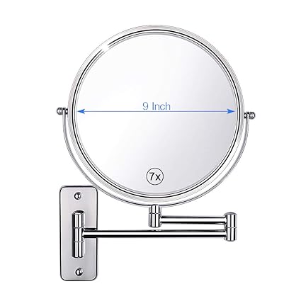 Gospire Upgraded 9 Inch Enlarged Wall Mount Makeup Mirror With 7x Magnification Double Sided Swivel Mirror Polished Chrome Finished