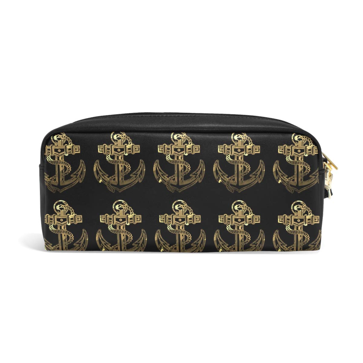 Amazon Com Navy Anchors Black Gold Pu Leather Cosmetic Bag Makeup