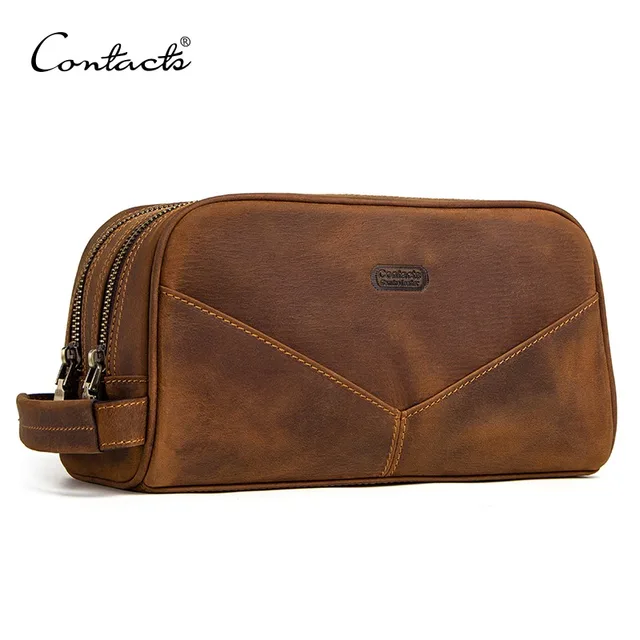 Us 31 26 40 Off Contact S Genuine Leather Cosmetic Bag For Men Vintage Crazy Horse Leather Man Make Up Bags Small Travel Bags Male Toiletry Bag In