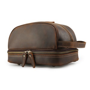 Vintage Leather Travel Makeup Toiletry Bag Wash Organizer Bag