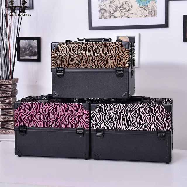 Wenjie Brother Big Size Leopard Print Abs Pu Make Up Box Makeup Case