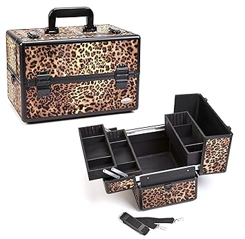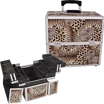 Professional Makeup Case With Expandable Trays Leopard Brown