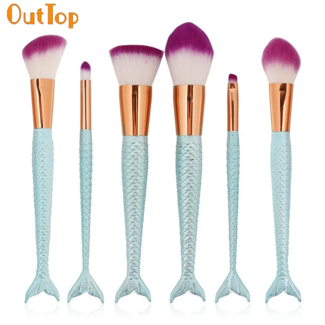 Us 7 61 35 Off Light Blue Mermaid Makeup Brush Outtop 6pcs Set Cosmetic Makeup Brushes Powder Concealer Foundation Brush 0412 Drop Ship In Eye