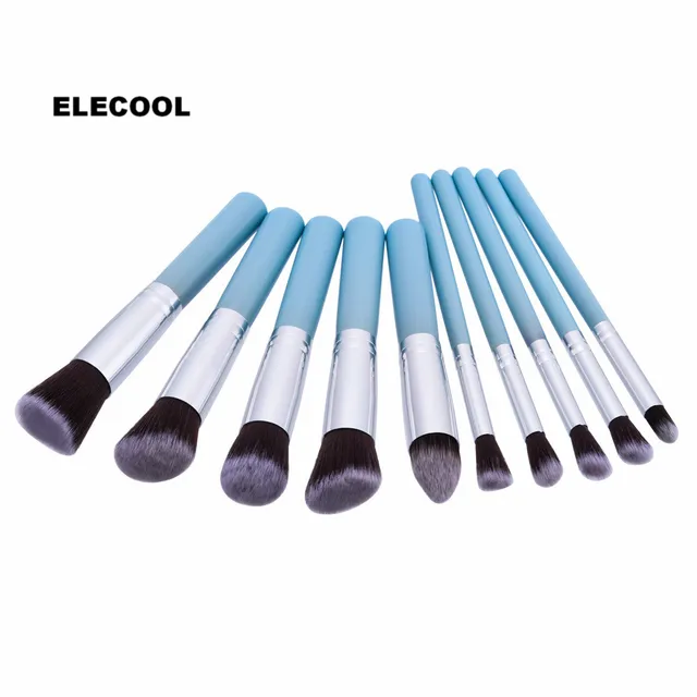 Elecool 10pcs Set Light Blue Makeup Brushes Set Artificial Fiber Hair Power Foundation Contour Eye Shadow Blush Make Up Brushes In Eye Shadow