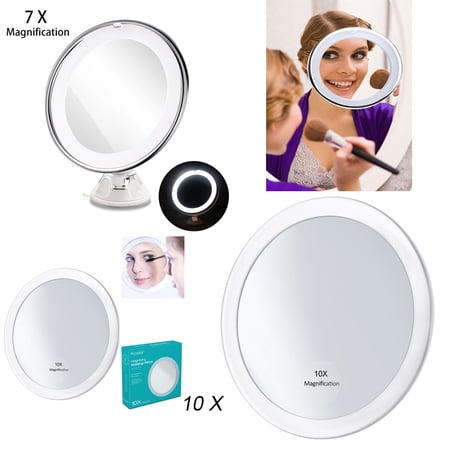 Easehold 10x Magnifying Led Lighted Vanity Mirror Makeup Countertop Bathroom Use 360 Rotation With Wall Mounted Locking Suction Cup Round