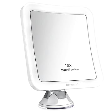Auxmir 10x Magnifying Led Lighted Makeup Mirror With Suction Base 360 Swivel Cordless Cosmetic