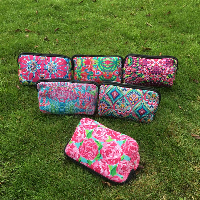 2019 Lilly Makeup Bag Coral Floral Cosmetic Bag Long Size Neoprene