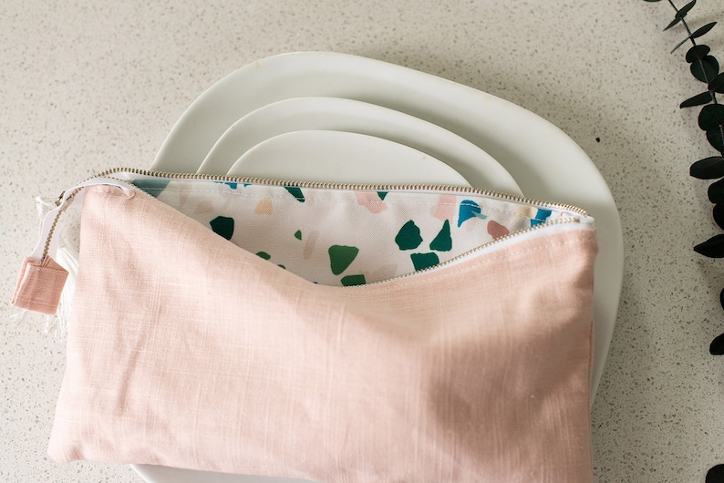 Blush Pink Cosmetic Bag Pink Linen Accessories Bag Lined Etsy