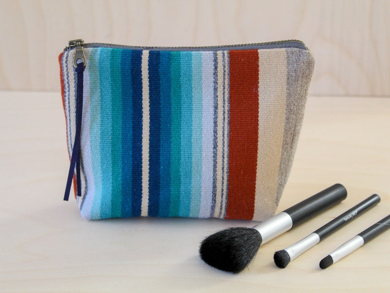 Brown And Turquoise Serape Stripe Lined Makeup Bag Lined Etsy