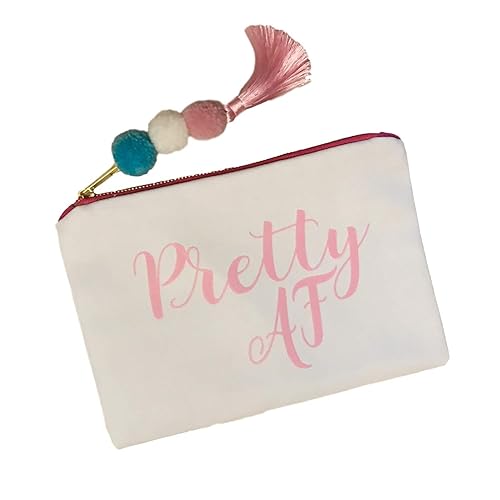 Amazon Com Pretty Af Satin Lined Canvas Makeup Bag With Tassel