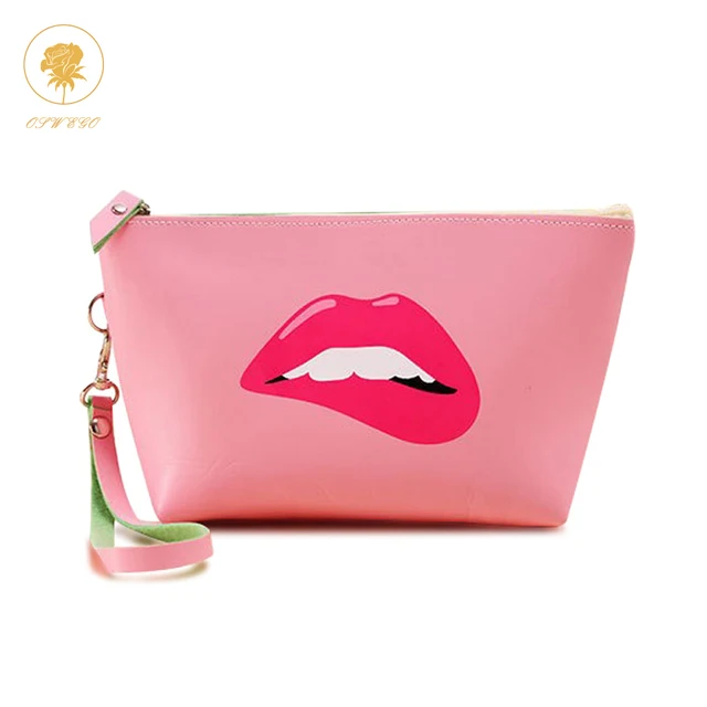 Travel Makeup Bag Cosmetic Case Pink Lips Oncils