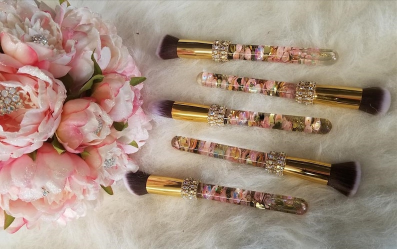 Pink Gold Makeup Brushes Glitter Glass Handle Liquid Etsy