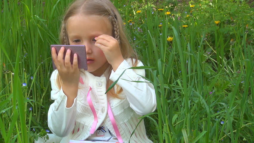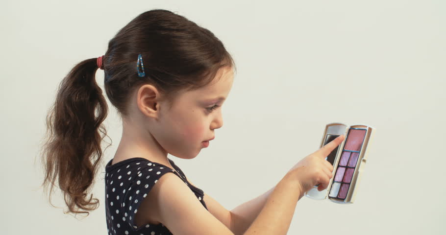 Little Girl Makeup Herself Child Stock Footage Video 100 Royalty