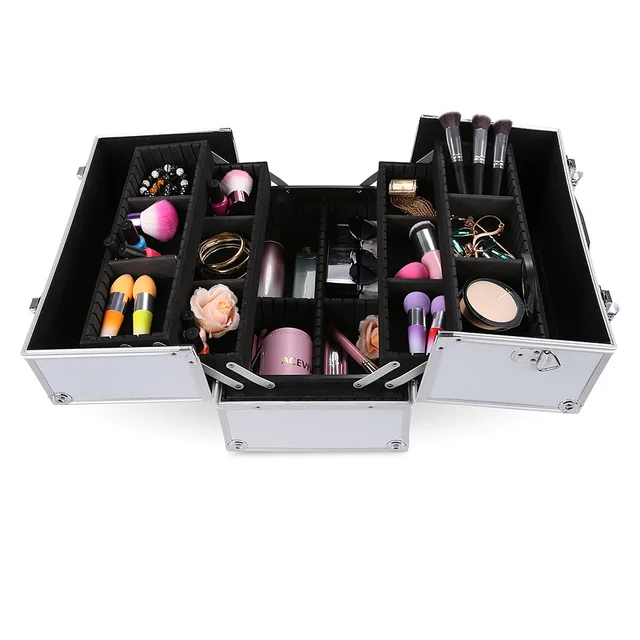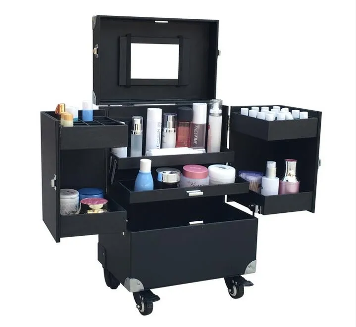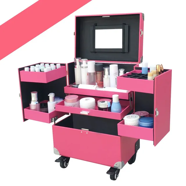 Aluminum Roll Makeup Storage Case Cosmetic Train Box Trolley