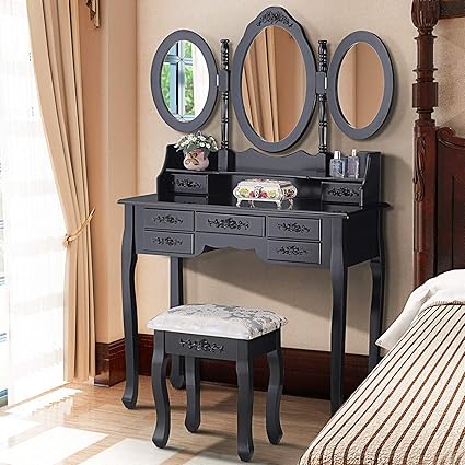 Luxury Vanity Table Black Vanity Set With Mirror Vanity Dressing