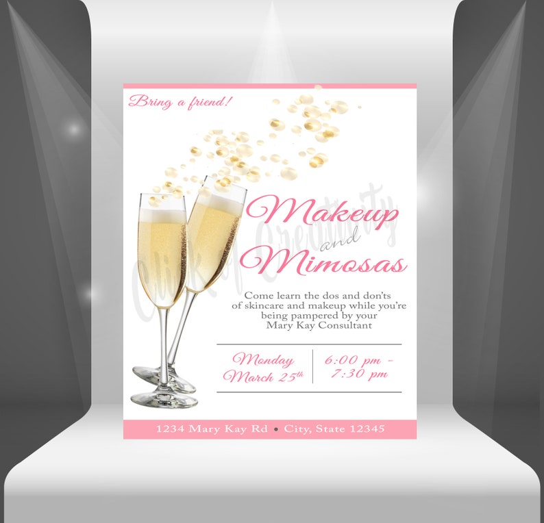 Makeup And Mimosas Flyer Pink And White Champagne Flyer Etsy