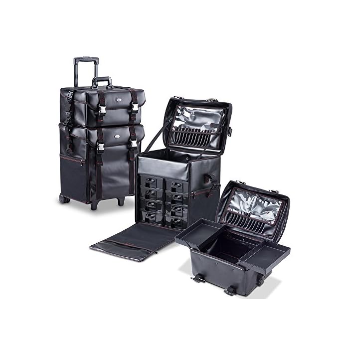 2 In 1 Professional Rolling Makeup Case Set With Drawers 2 In 1