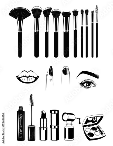 Makeup Artist Brushs And Tools Lips Nails And Eye Vector