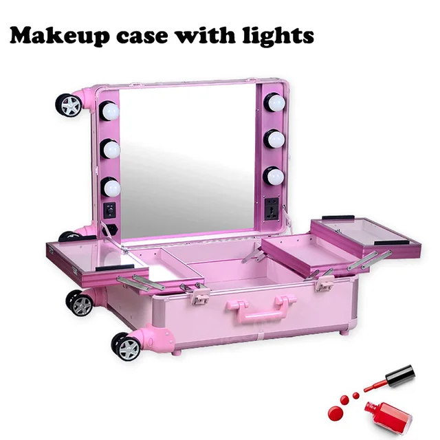 Us 166 4 36 Off Professional Rolling Makeup Artist Studio Cosmetic Case Lights Mirror Beauty Box Trolley In Cosmetic Bags Cases From Luggage