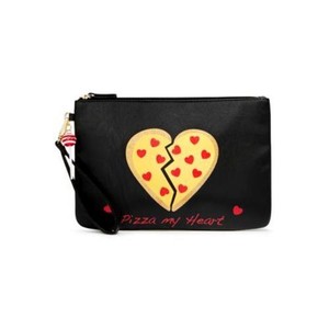 Betsey Johnson Pizza My Heart Black Wristlet Clutch Makeup Bag Ebay