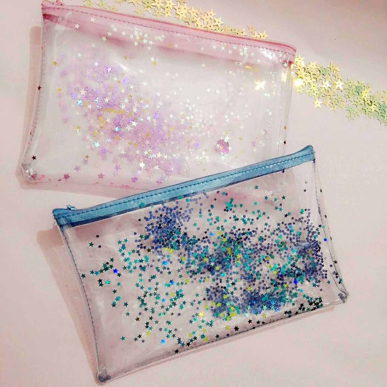 Pvc Bling Star Pattern Cosmetic Bag Transparent Waterproof Makeup