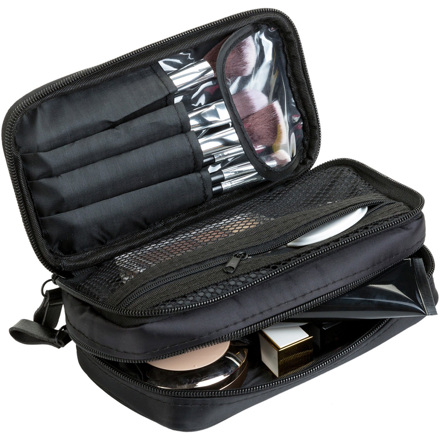 Amazon Com Black Makeup Bag With Brush Holder Compartment