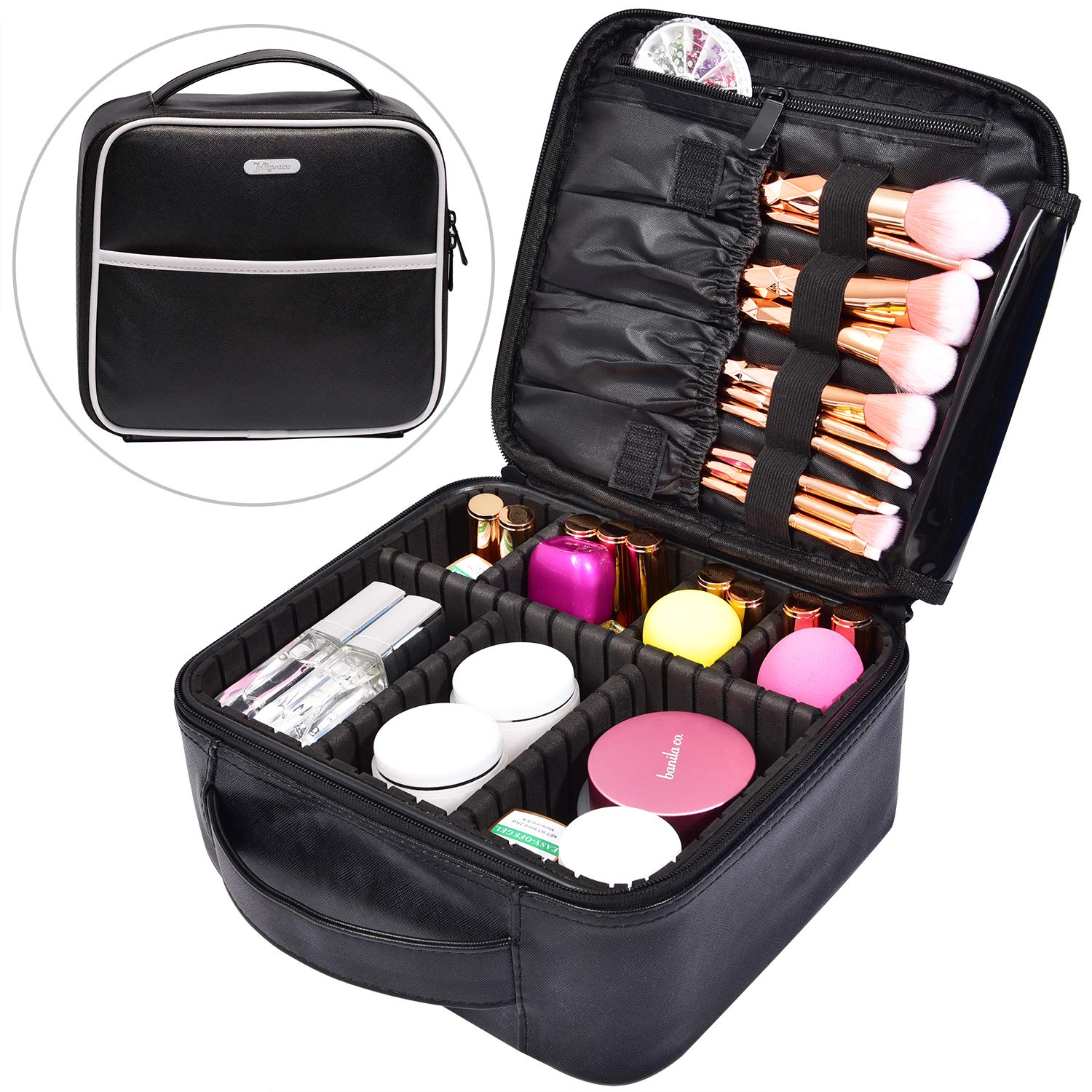 Amazon Com Jecimer Travel Makeup Bag Train Case Cosmetic Bags