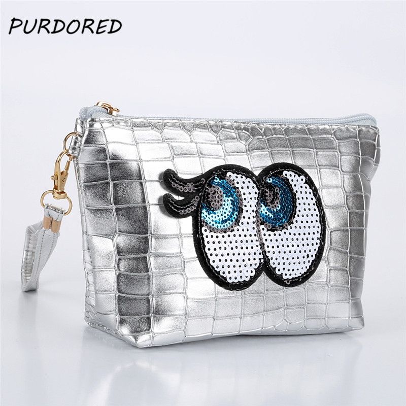 Purdored Women Eyelash Cosmetic Bag Sequin Eyes Makeup Bag Travel