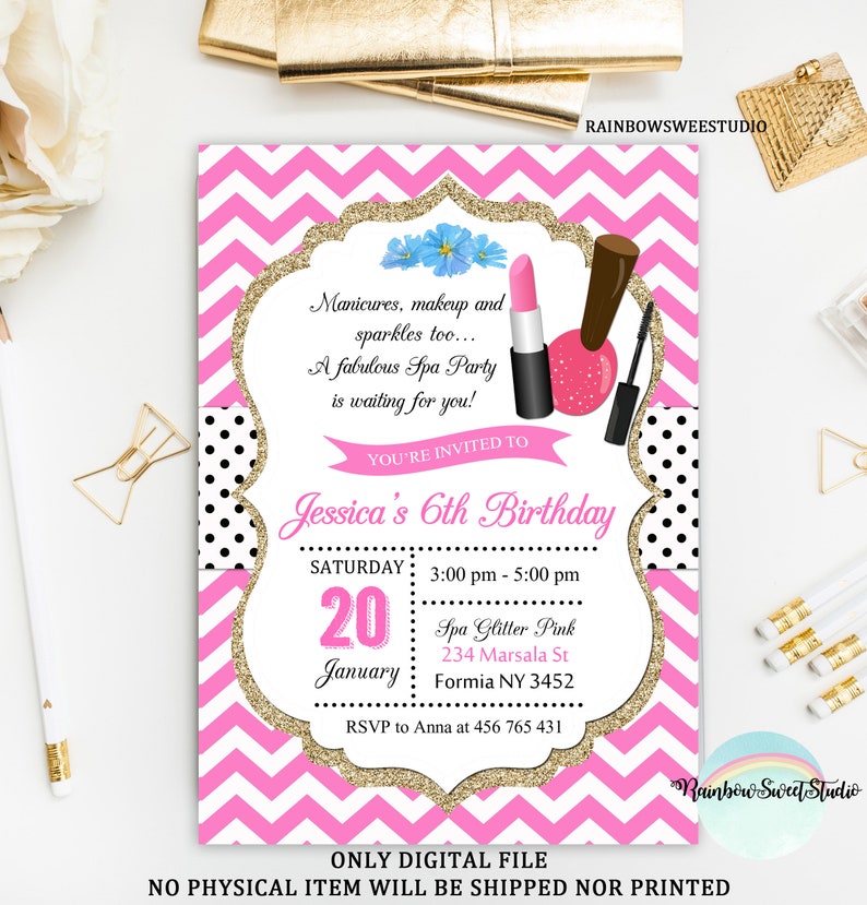 Makeup Birthday Party Invitation Spa Time Birthday Party Etsy
