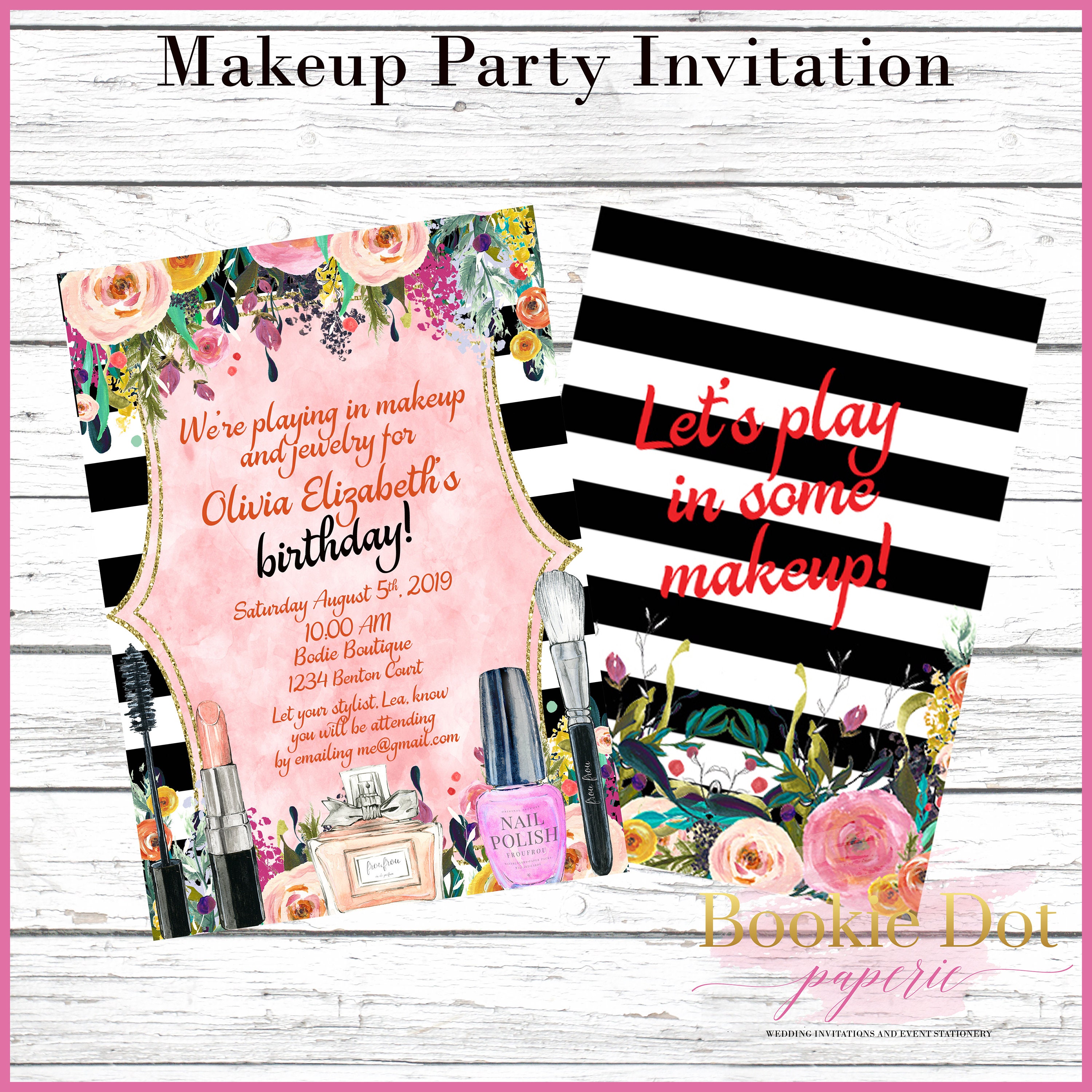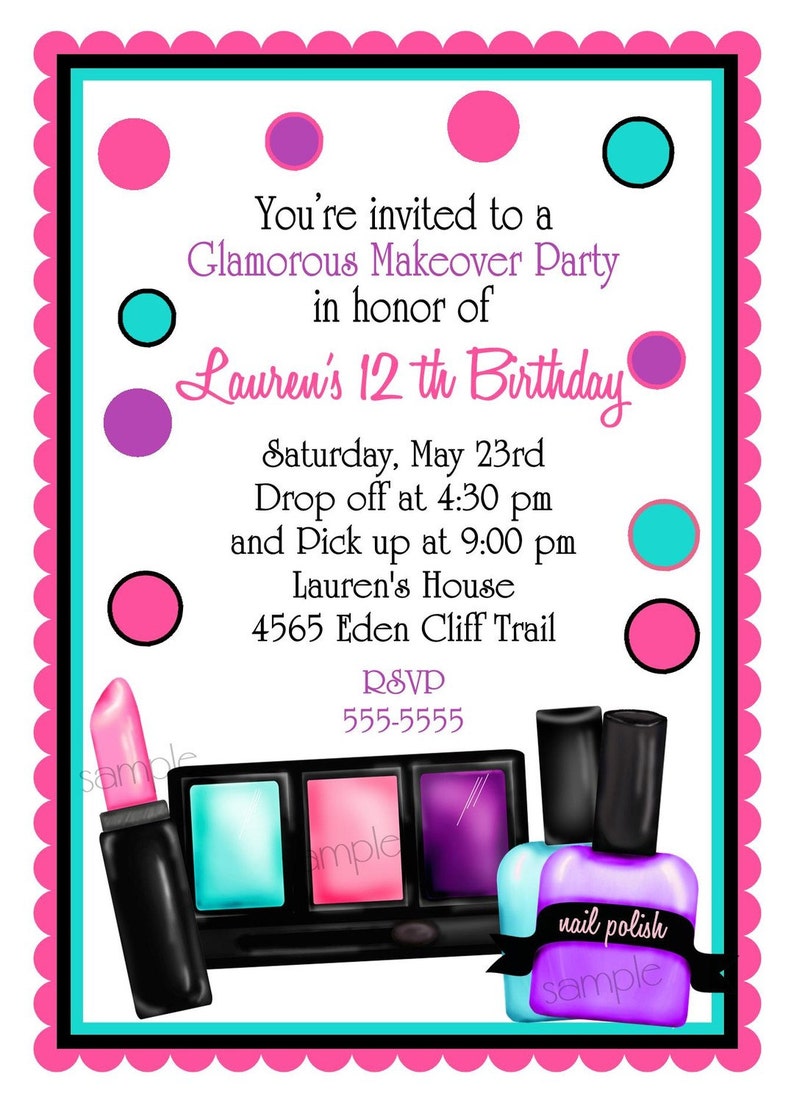Makeup Birthday Party Invitations Makeup Makeover Etsy