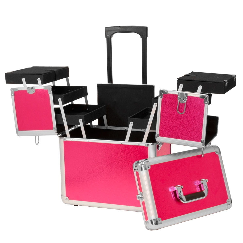 Homegear Professional Cosmetics Wheeled Makeup Train Case Pink