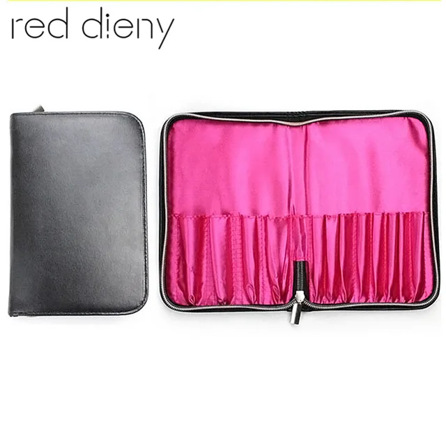 Us 4 03 10 Off Pro 12 Pockets Makeup Brush Bag Women Cosmetic Black Pu Leather Makeup Brushes Bag Organizer Brushes Case Storage With Zipper In Eye