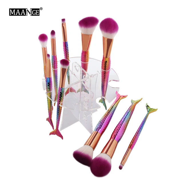 Maange 10 Holes Acrylic Mermaid Makeup Brushes Drying Rack Stand