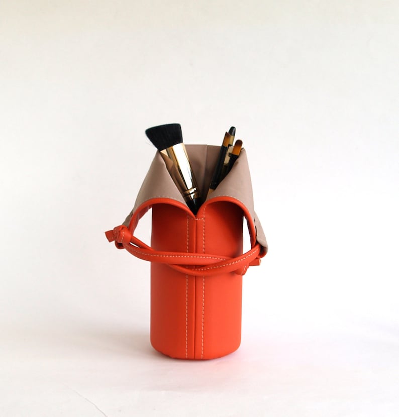 Orange Makeup Brush Cup Mothers Day Gift Vegan Leather Makeup Etsy