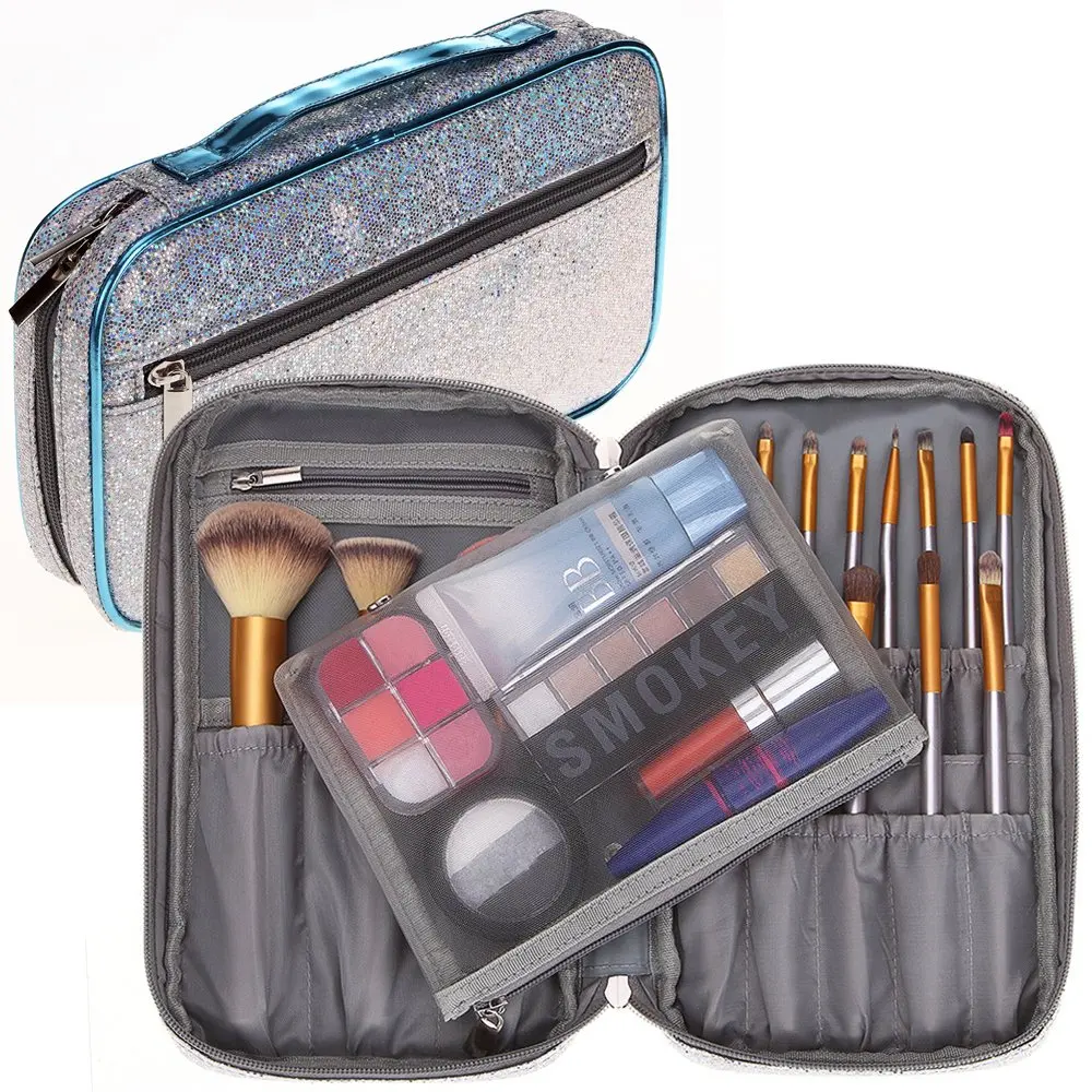 Amazon Com Lemoncy Travel Makeup Case Portable Makeup Brush Bag